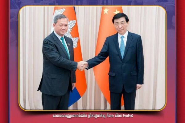 សម្តេចមហាបវរធិបតី ហ៊ុន ម៉ាណែត នាយករដ្ឋមន្ត្រីកម្ពុជា បានអញ្ជើញជួបពិភាក្សាការងារជាមួយ ឯកឧត្តម វ៉ាង ហូនឹង (Wang Huning) ប្រធានសភាប្រឹក្សានយោបាយប្រជាជនចិន ក្នុងឱកាសចូលរួមកិច្ចប្រជុំកំពូលអង្គការសហប្រតិបត្តិការសៀងហៃ បូក (SCO) នៅទីក្រុងធានជីង ប្រទេសចិន។ ឯកឧត្តម វ៉ាង ហូនឹង បានសរសើរទំនាក់ទំនងប្រពៃណី និងយូរអង្វែងរវាងកម្ពុជា-ចិន ដែលកាន់តែរឹងមាំ ទោះឆ្លងកាត់បញ្ហាប្រែប្រួលអន្តរជាតិ។ គាត់បានបញ្ជាក់ថា ចិននឹងបន្តគាំទ្រកម្ពុជាដោយឥតលំអៀង តាមទិសដៅដែលប្រធានាធិបតី ស៊ី ជីនពីង បានដាក់ចេញក្នុងជំនួបទ្វេភាគី។ សម្តេច ហ៊ុន ម៉ាណែត បានសង្ឃឹមឲ្យភាគីចិនបន្តជំរុញ និងគាំទ្រកម្ពុជា ក្នុងការកែលម្អសមត្ថភាពអភិវឌ្ឍ និងការពារអធិបតេយ្យជាតិ។ គាត់ក៏បានអំពាវនាវឲ្យចិន ជួយជំរុញឲ្យកម្ពុជា និងថៃ ដោះស្រាយបញ្ហាព្រំដែនដោយសន្តិវិធី តាមរយៈ គណៈកម្មការចម្រុះព្រំដែនកម្ពុជា-ថៃ (JBC) ដោយផ្អែកលើកិច្ចព្រមព្រៀង និងច្បាប់អន្តរជាតិ។ ចំពោះជម្លោះព្រំដែន ក្តីប្រកាសរបស់ចិន បានបញ្ជាក់ថា ចិនគាំទ្របទឈប់បាញ់រវាងកងទ័ពកម្ពុជា និងថៃ ព្រមទាំងគាំទ្រតួនាទីម៉ាឡេស៊ី ក្នុងការសម្របសម្រួល។ ចិនក៏បានសន្យាថា នឹងបន្តតាមដាន និងជួយឲ្យទំនាក់